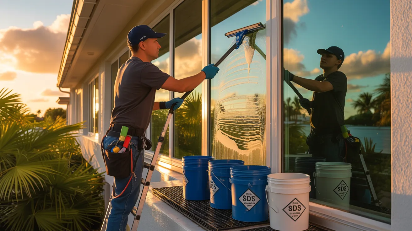 - The coastal climate in Naples necessitates quarterly window cleaning and biannual pressure/soft washing to remove salt, UV oxidation, and algae.